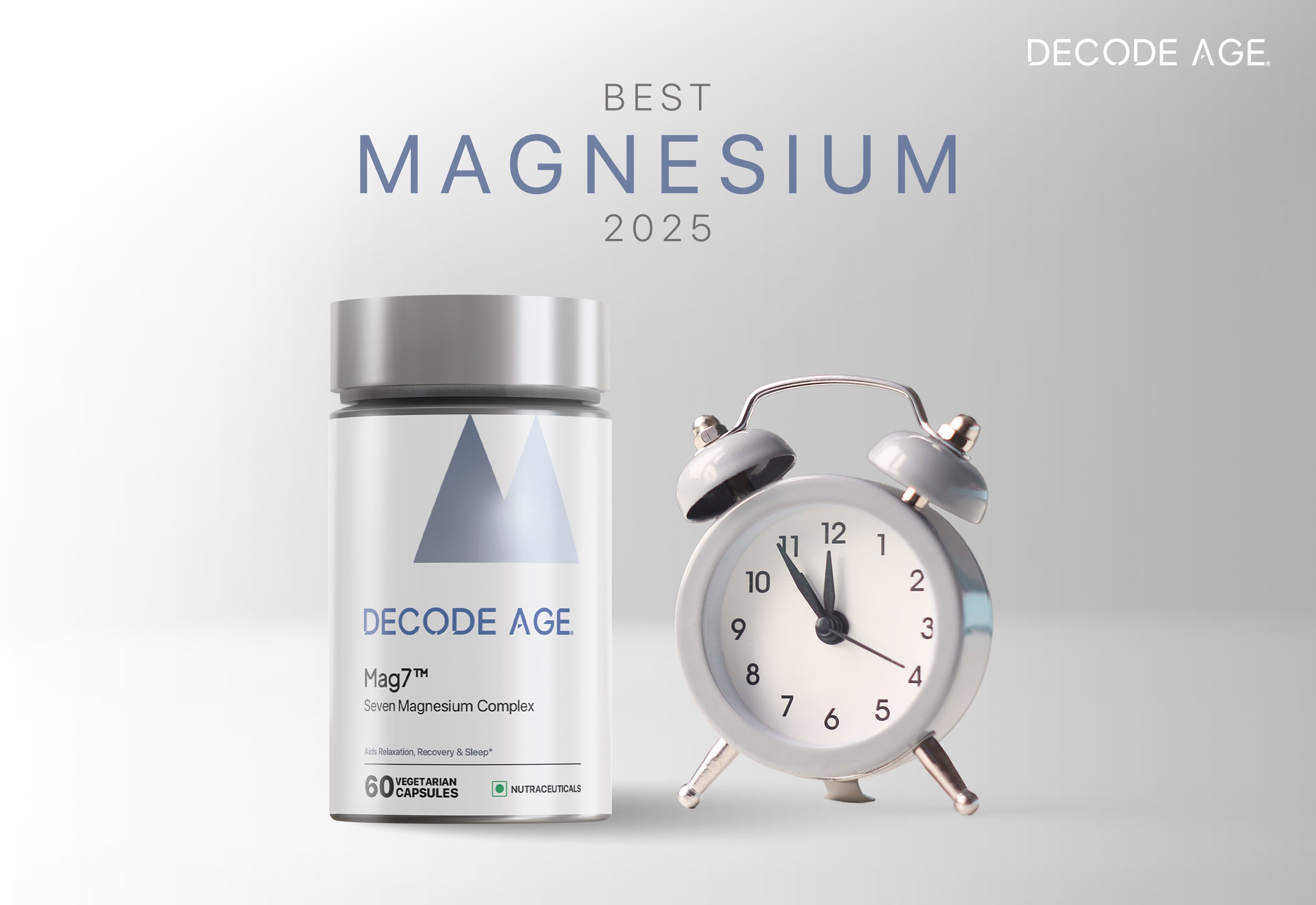 Unlike single-form supplements, Decode Age Mag7 blends seven forms of magnesium, addressing sleep, cognition, energy, digestion, and muscle recovery together. Itâs third-party tested, vegan, and tailored for longevity, making it one of the best magnesium supplements in 2025.Â