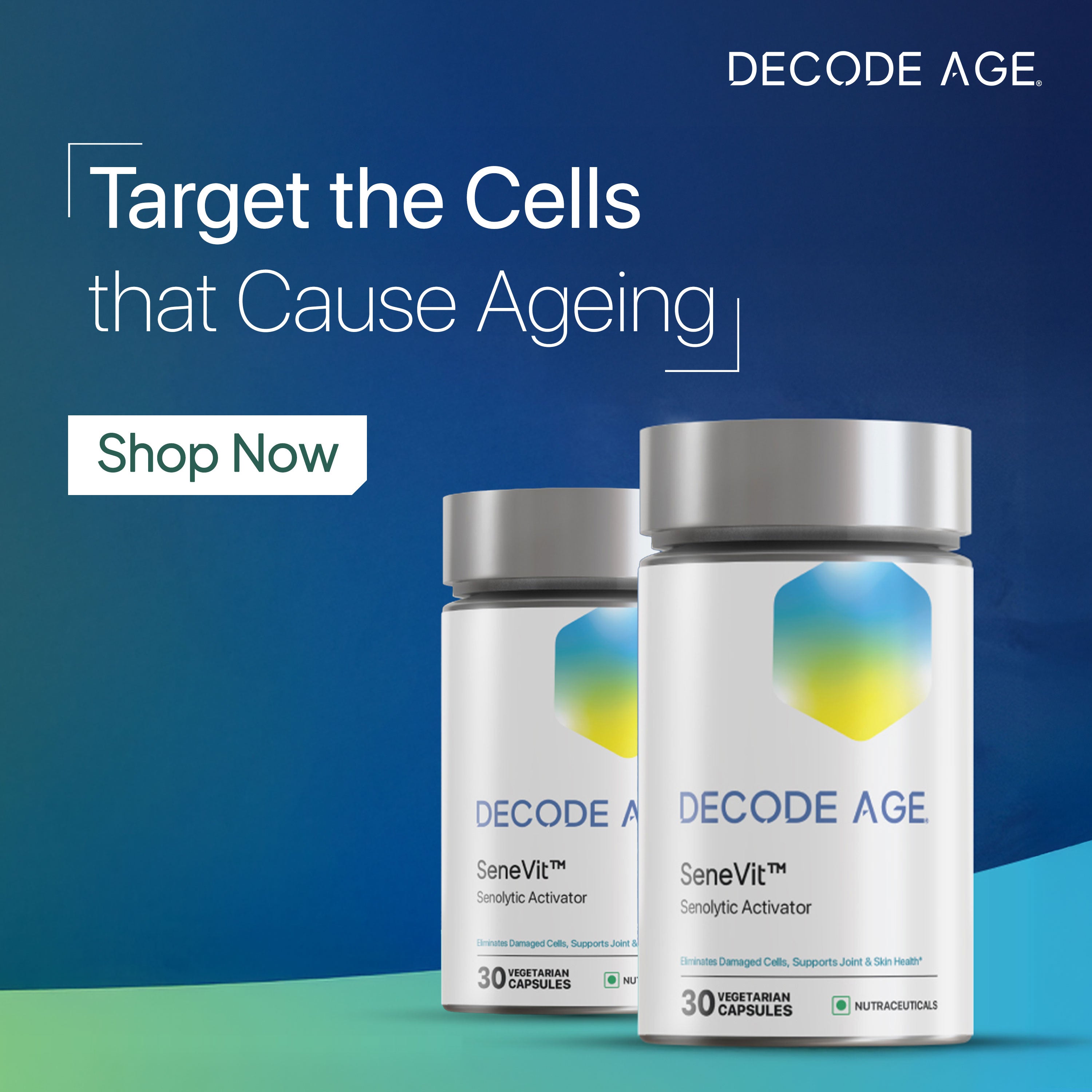 As we age, certain cells stop dividing but do not die, these are called as senescent cells. These cells accumulate in tissues and release harmful substances like the Senescence-Associated Secretory Phenotype (SASP), which damages surrounding healthy cells, causing inflammation and contributing to age-related disorders. SeneVit is a blend designed to help eliminate these "zombie" cells, promoting longevity.