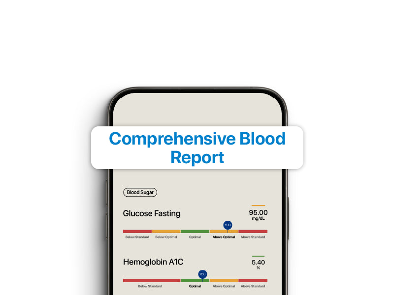 We analyze over 70 blood parameters against optimal reference ranges, which are more stringent than regular blood reports, to highlight deviations from optimal health.